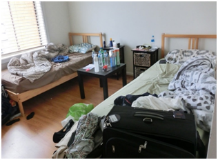 このアパートはツインの部屋が2つあり(私はツインの部屋に一人、男性は二人)、台所と居間、シャワールームは共用です。 同居人はフランス人のトーキー30代とネザーランド人(オランダ)ラスカル20歳で、親切な二人でした。