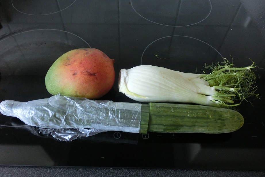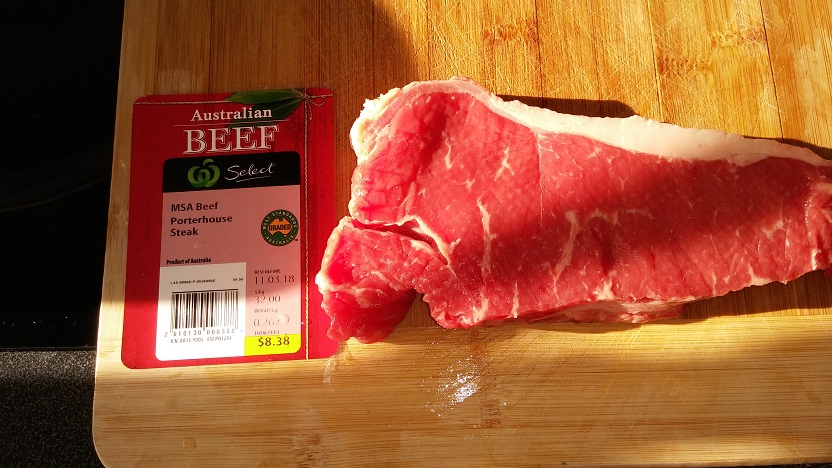 私の大好物のマンゴーは安く(250円くらい)売られていますし、プラムくらいの大きさのピーチは、種と実が離れやすく、皮ごと食べられるので、地元の人もよく食べています。フローレンスフェンネルは香りが良く、きゅうりは大きいわりに種が少なくて味がしっかりしています。ほうれん草(Spinach)の幼葉は、サラダやスープに入れるのに便利です。先日、せっかくオーストラリアに来ているのだからと、オージービーフの分厚いステーキ肉を買いました。320gで800円ととても安価でしたが、全部は食べきれないのでラスカルと半分にして「ヘルシーで美味しいね。」と食べました。