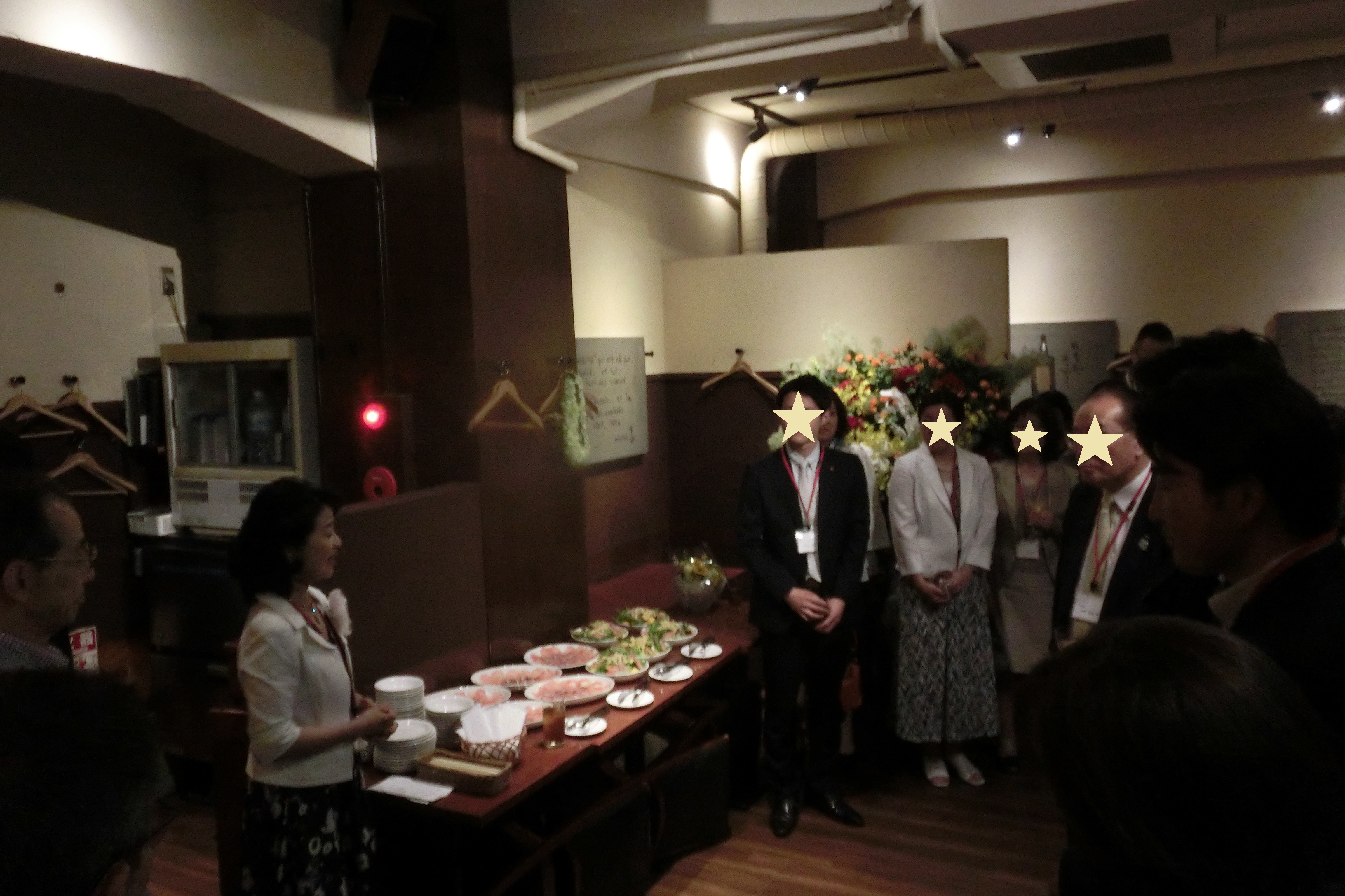 ささやかですが、簡単な食事とお酒を囲み、にぎやかな歓談の輪が広がりました。