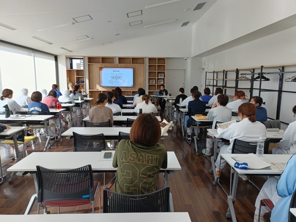 オフィス田中の大量調理技術アドバイザー殿塚婦美子(女子栄養大学名誉教授)を講師に、大量調理において必要なスキルの向上のため、だしの取り方と葉菜類の茹で方の実習を交えた講習を実施しました。