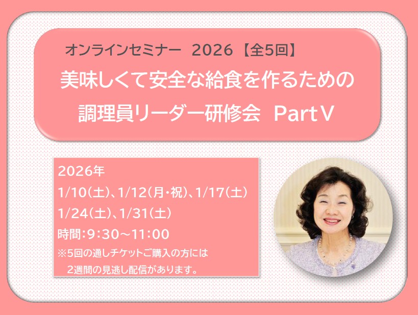 【申し込み受付中】【法人参加もOK】美味しくて安全な給食を作るための調理員リーダー研修会 PartⅤ