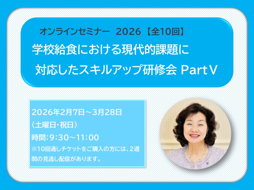 【単回申し込み受付中】学校給食における現代的課題に対応したスキルアップ研修会 PartⅤ